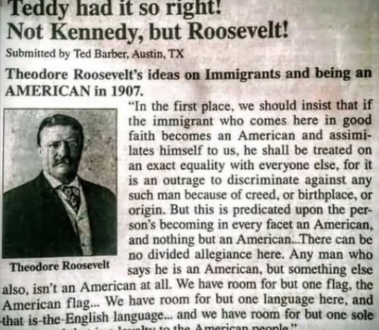 FL Governor GOV USA President TRUMP Theodore Roosevelt ideas on Immigrants and being and American in 1907 December 22, 2025 TampaPost